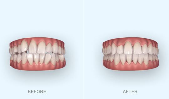 リスクや副作用:まれに歯の根が短くなる可能性があります。装置装着後、痛みを感じることがあります(歯が動く正常な反応なので心配ありません)。頬の粘膜・唇・舌などに、口内炎ができることがあります。歯周病等で歯茎が下がっている方は、歯を動かすことでさらに歯茎が下がる可能性があります。重なっていた歯がきれいに並んだことで歯茎と両隣の歯との間に三角形の隙間ができる可能性があります。