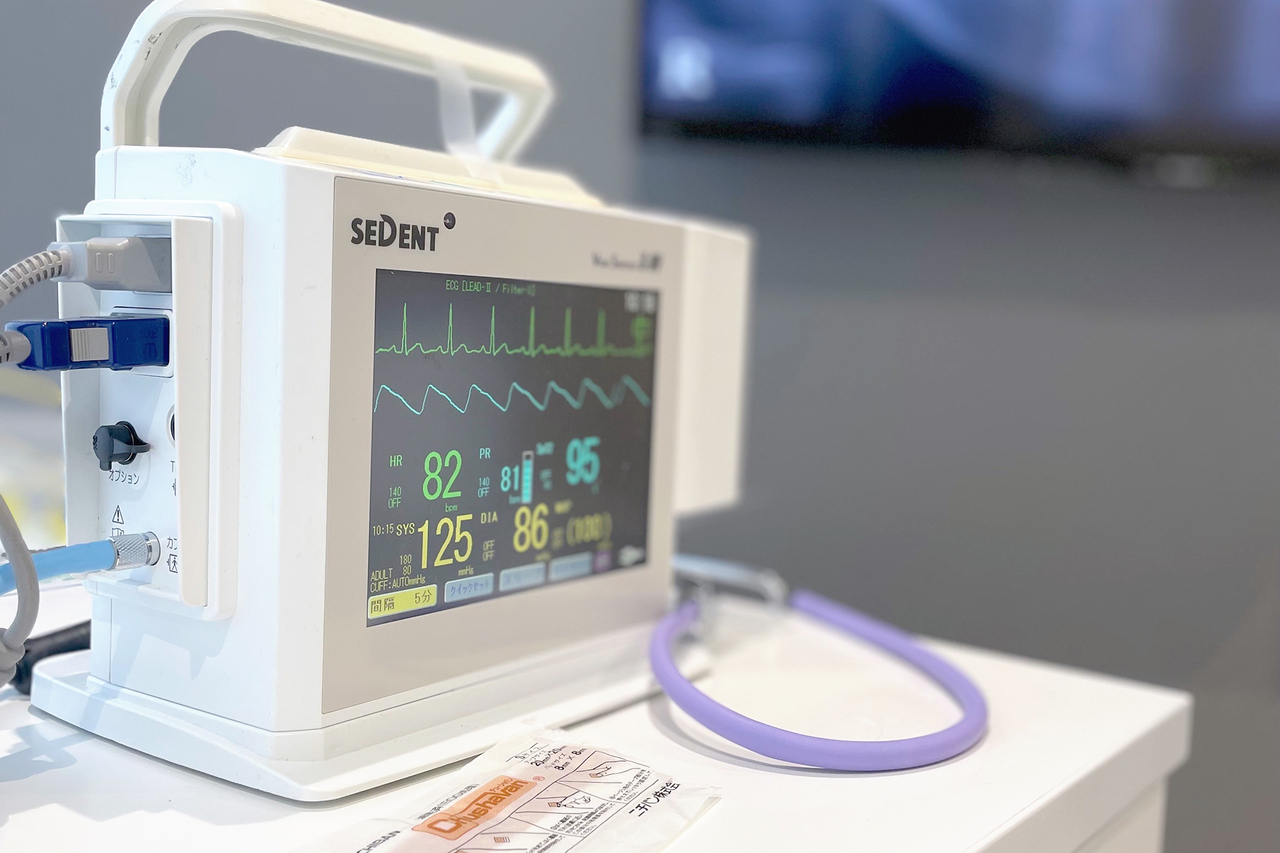 血圧計・動脈血酸素飽和度・心電図などの各種モニターを装着します。患者さんの様子をより的確に把握するため、口紅やマニキュア、コンタクトレンズはせずにお越しください。