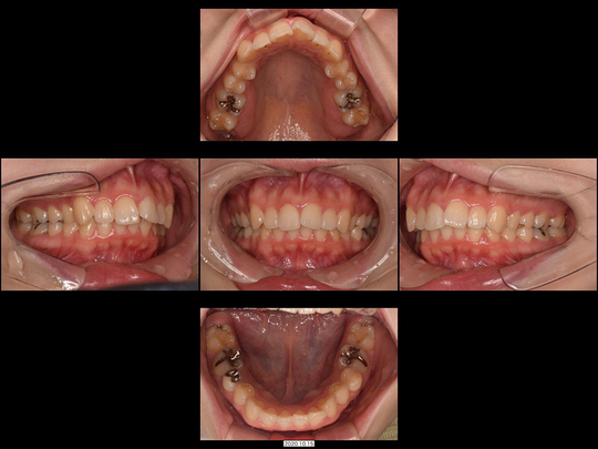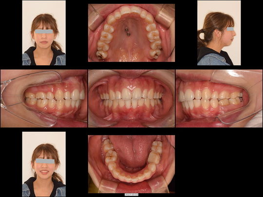 上下のあごのズレは大きくなかったため、上あごの両側にある4本の歯を抜き、ワイヤー全体矯正で対応しました。前歯の印象を大きく変えることに成功しています。